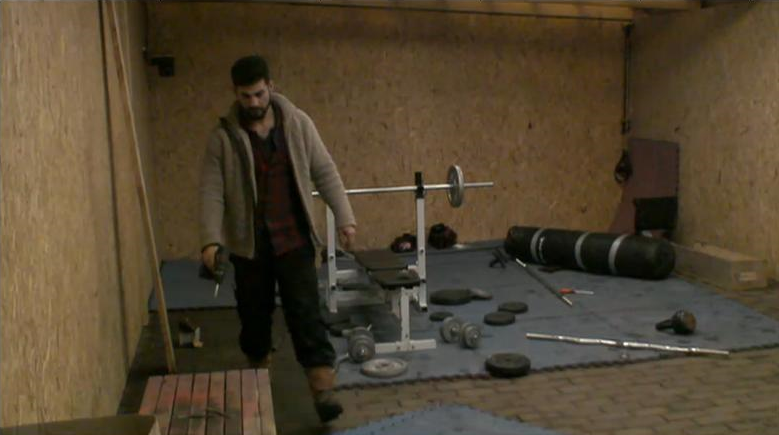 Later op de avond, zien wij dat Ivan nog druk bezig is om de gym zo netjes mogelijk te krijgen. Wij zien dat Ivan daar ijverig in de weer is en ook nog de boormachine hanteert.