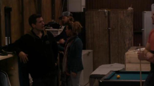 Joey is in gesprek met Chris. Het gesprek gaat over het incident tussen Joey en Chris. Tijdens dit incident, maakte Joey de spitsvork van Chris krom of brak die (?) en sloeg het glas van de kassen stuk. Daarop volgend gooide Chris kwaad de spitsvork met een enorme worp bovenop het dak. Dit voorval wordt nu besproken. De sfeer is gemoedelijk en wij zien hen bij de biljarttafel staan. LauraB is ook aanwezig en even later komt Gio ook binnen en blijft verder tijdens het gesprek aanwezig.